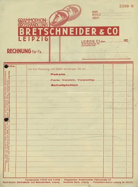 Bretschneider & Co. Leipzig Rechnung 1928/30