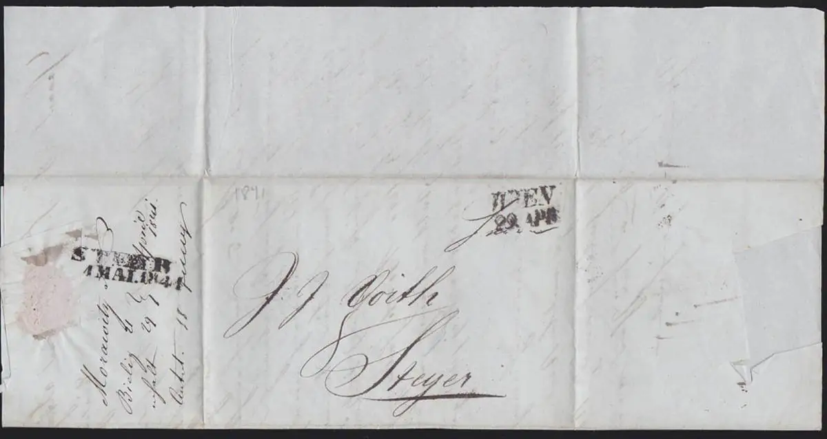 Brief 1841 WIEN nach Steyr Steyer Ober-Österreich Jacob Veits Faltbrief mit Text