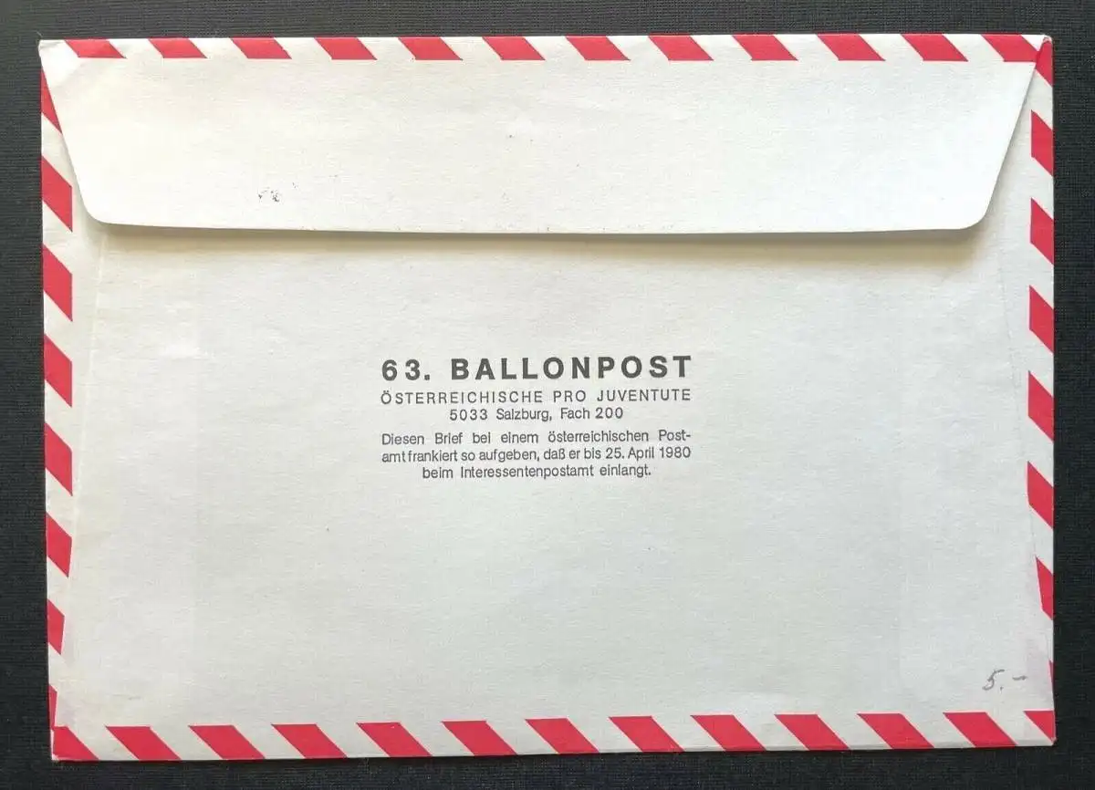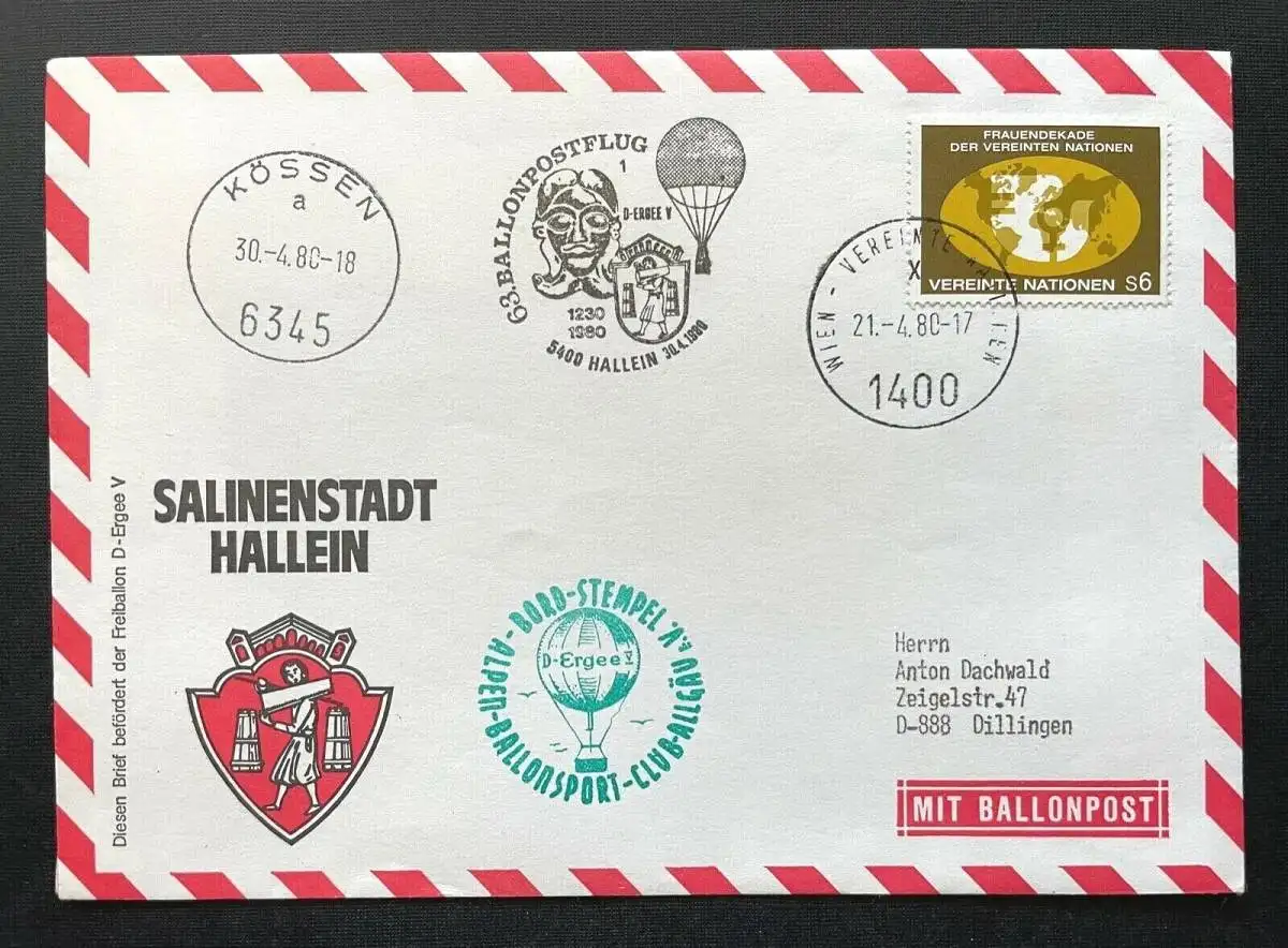 Brief Salinenstadt Hallein Ballonpost Bordstempel 1980 ca.16,1x11,4cm 410346