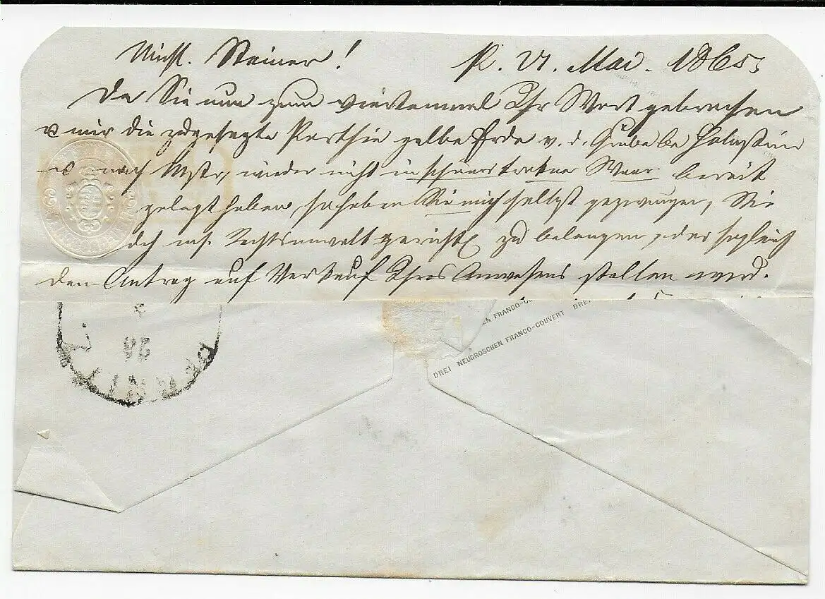 Brieffragment Leipzig 1865 nach Regnitz