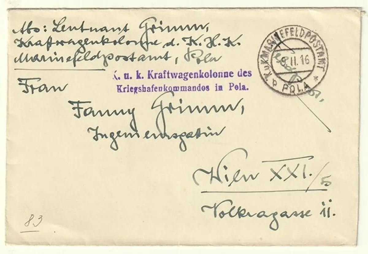 Bemerkungen: Gelaufen mit Stempel. Zweizeil. Stempel violett neben K. u. K.MFPA/9.11.16/Pola.