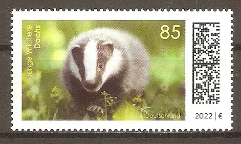 Briefmarke BRD Mi.Nr. 3681 ** Tierbabys 2022 / Europäischer Dachs (Meles meles) #