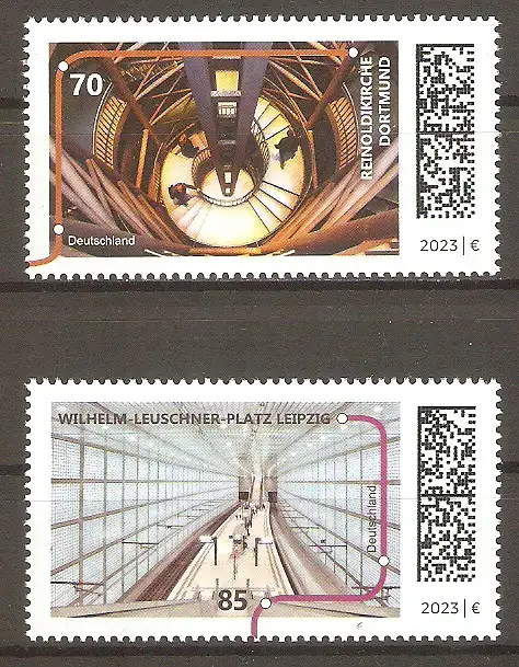 Briefmarke BRD Mi.Nr. 3759-3760 ** U-Bahn-Stationen 2023 / U-Bahn-Haltestelle Reinoldikirche, Dortmund & U-Bahn-Haltestelle Wilhelm-Leuschner-Platz, Leipzig / Kompletter Satz ! #20241082
