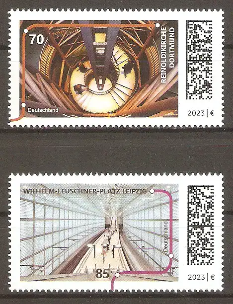 Briefmarke BRD Mi.Nr. 3759-3760 ** U-Bahn-Stationen 2023 / U-Bahn-Haltestelle Reinoldikirche, Dortmund & U-Bahn-Haltestelle Wilhelm-Leuschner-Platz, Leipzig / Kompletter Satz ! #20241083