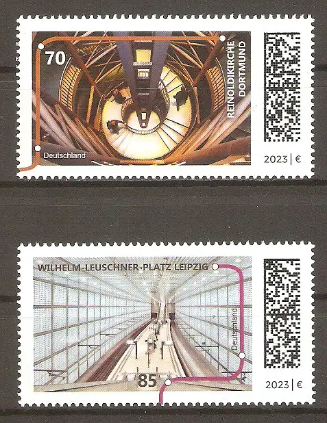 Briefmarke BRD Mi.Nr. 3759-3760 ** U-Bahn-Stationen 2023 / U-Bahn-Haltestelle Reinoldikirche, Dortmund & U-Bahn-Haltestelle Wilhelm-Leuschner-Platz, Leipzig / Kompletter Satz ! #20241085