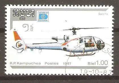 Briefmarke Kambodscha Mi.Nr. 893 o Hubschrauber 1987 / Sud Aviation SA-341 Gazelle #20251743