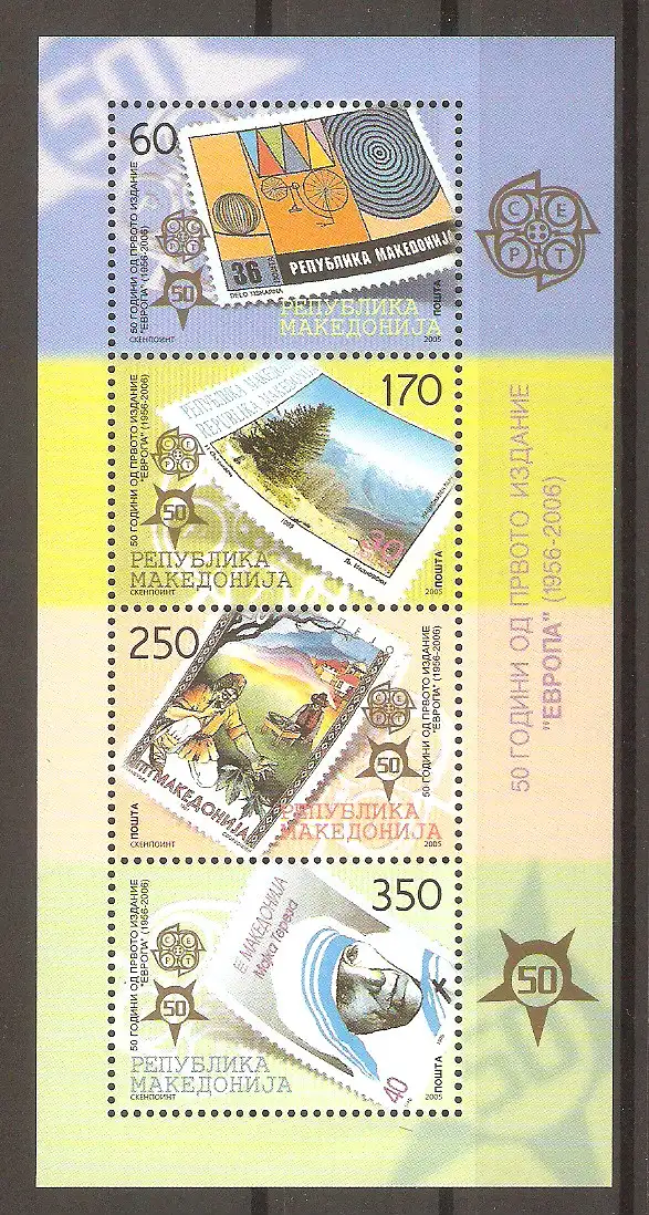 Briefmarke Mazedonien Block 13 ** (Mi.Nr. 370-373) Europa CEPT 2005 / 50 Jahre Europamarken 2006 #20251566