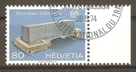 Briefmarke Schweiz Ausg. f. Int. Organisationen, BIT MiNr. 104 o Einweihung des neuen Amtssitzes der Internationalen Arbeitsorganisation (ILO) in Genf 1974 #2024483