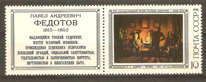 Briefmarke Sowjetunion Mi.Nr. 4490 mit Zierfeld ** Gemälde von Pawel Fedotow 1976 / "Die Spieler" #20241444