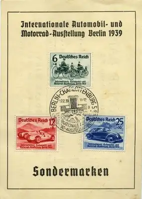 Briefmarken Set zur IAA 1939 mit VW KdF-Wagen