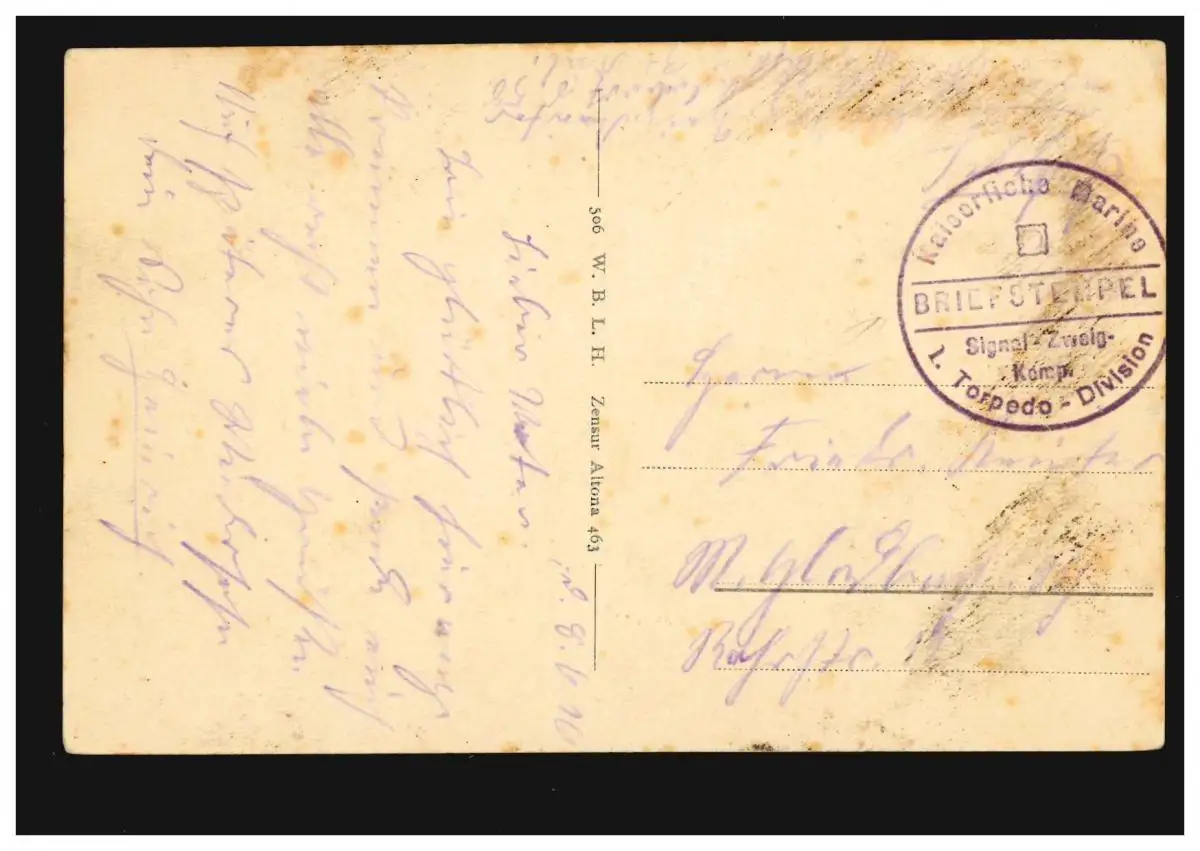 Briefstempel Kaiserliche Marine Signal-Zweig-Kompanie 1.Torpedo-Division