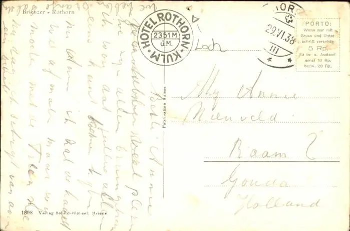 Brienzer Rothorn BE Brienzer Rothorn postalisch gelaufen 1938 Alte Ansichtskarte Postkarte Elvigtle