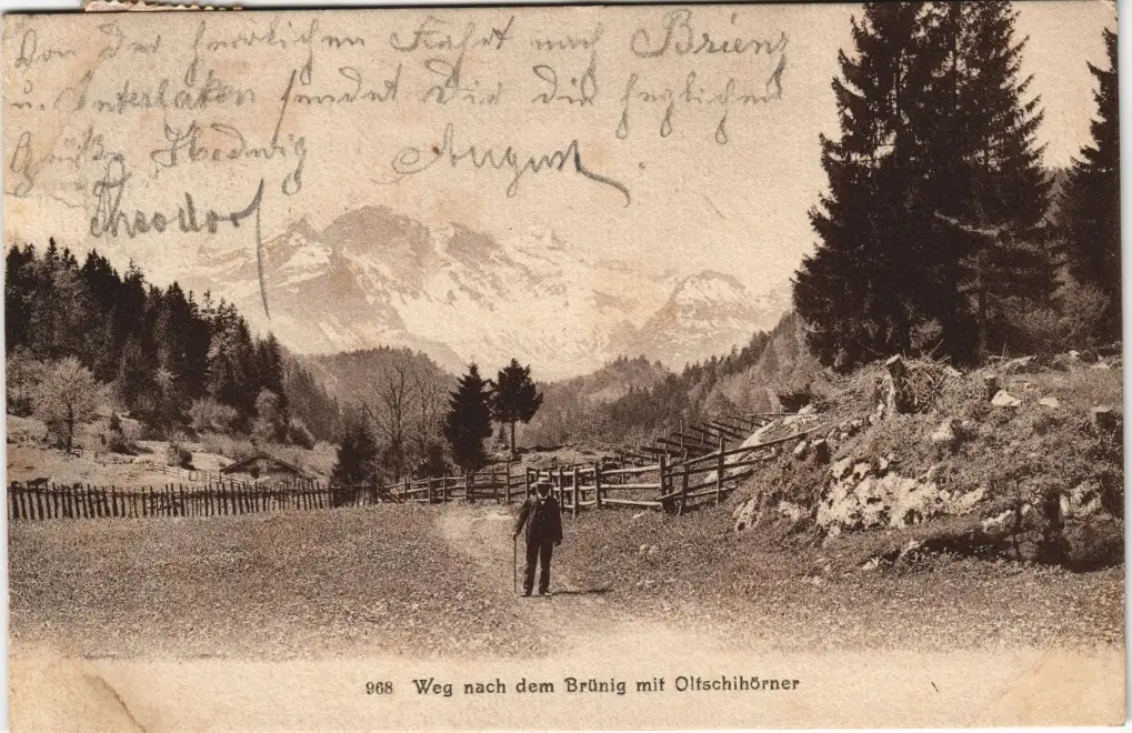 Brünig BE-Meiringen Weg nach dem Brünig mit Oltschihörner 1905