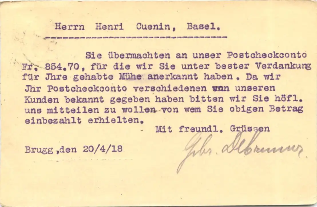Danke. Alles Bestens. Können Sie mir allenfalls mitteilen, aus welchem Jahr die Postkarte stammt? Besten Dank.