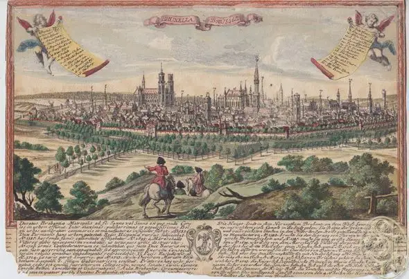 Augsburg [1729]. Gesamtansicht. Altkolorierter Kupferstich n. Friedrich Bernhard Werner b. Johann Christian Leopold. 19, 5 x 28, 6 cm. (Blattgr.). Je ein kl. Loch in d. ob. Ecken. Knapp zum Rand beschn. In der Textkartusche randrissig.