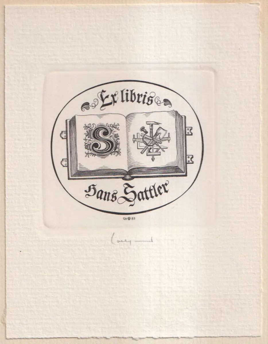 Bemerkungen: Zustand: Einband etwas berieben, Papier leicht gebräunt. // Text in Fraktur. Mit Exlibris von Hans Sattler auf dem Vorsatz - Kupferstich von Oswin Volkamer.