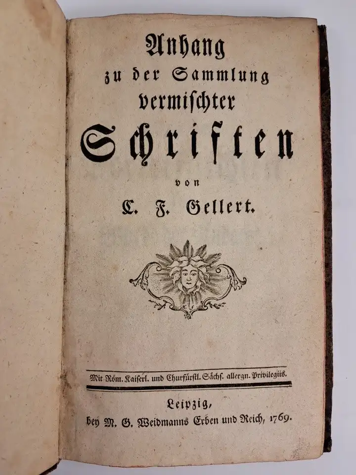 Weidmanns Erben und Reich, Leipzig, 1769. 68 Seiten 20,0 x 125, cm, Halblederband