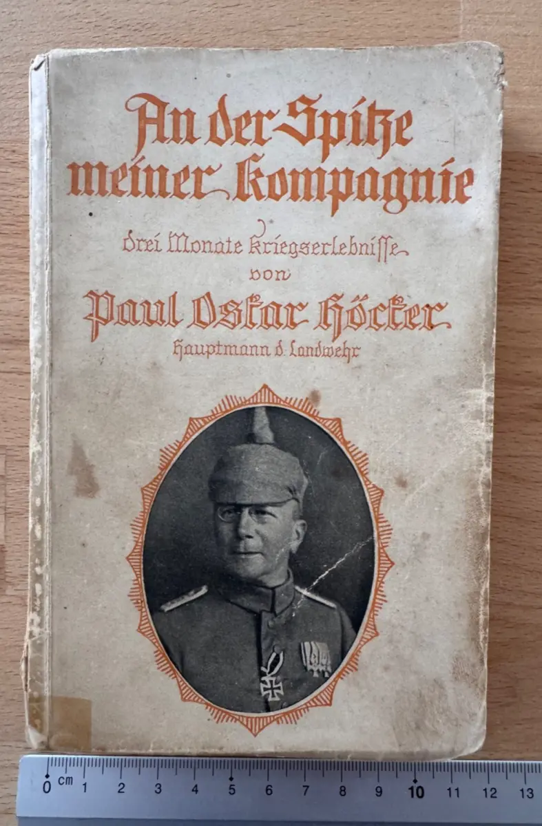 Autor: Paul Oskar Höcker (1864–1949) Der Autor beschreibt die ersten drei Monate des Krieges aus Sicht eines Kompaniechefs und vermittelt eindrucksvoll den Alltag, die Disziplin, Kameradschaft und Entbehrungen der Soldaten. Laut biografischen Quellen (vgl. Wikipedia über Paul Oskar Höcker) gehörte der Autor zu den populären deutschen Erzählern der Kaiserzeit, bekannt für seine realistischen und patriotisch gefärbten Kriegsdarstellungen. Das Buch erschien bereits 1914 im Verlag Ullstein & Co. in Berlin und Wien, einem der bedeutendsten deutschen Verlage jener Zeit. Es zählt zu den frühen literarischen Dokumenten des Kriegsbeginns und wird heute als zeittypisches Fronttagebuch und literarisches Zeugnis des frühen 20. Jahrhunderts geschätzt.