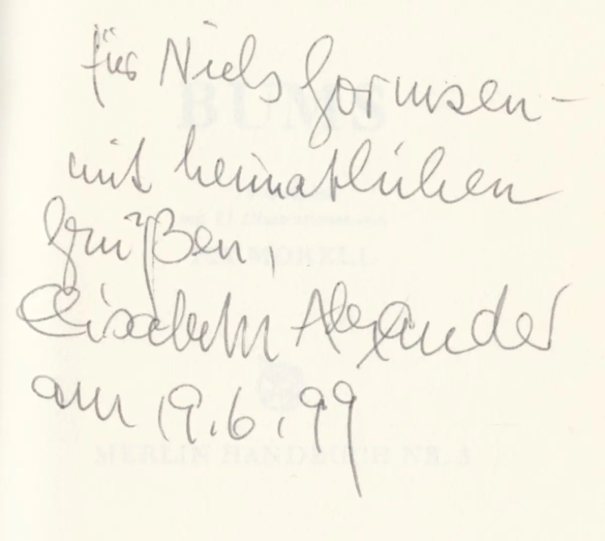 Bemerkungen: Zustand: Einband etwas berieben, Widmung auf Titel, Rücken etwas aufgehellt // Mit 13 Illustrationen von Pit Morell. Merlin Handbuch 3. Signiert vom Autor