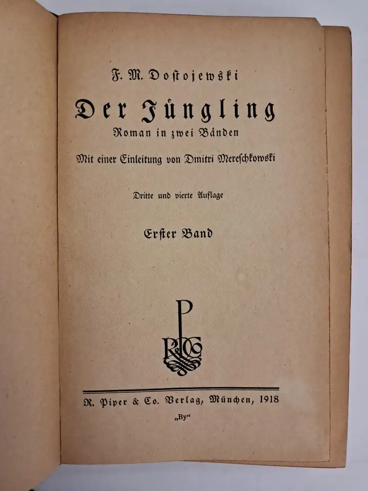 Piper, München, 1918. 507/525 Seiten 18,8 x 12,8 cm, Leinenbände