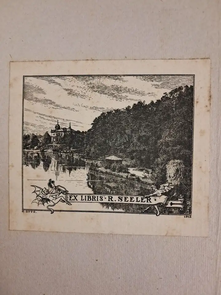 Bemerkungen: Zustand: Lederrücken berieben, oberes Kapital eingerissen, Ecken etwas bestoßen, die ersten paar Seiten etwas braunfleckig // Mit Abbildungen. Mit Exlibris von R. Seeler, Künstler: Georg Otto, 1912. George Eugéne Otto, signierte stets als G. Otto, (1868-1939) war ein deutscher Grafiker und Heraldiker. Als Schüler von Emil Doepler schuf Otto hauptsächlich Exlibris.