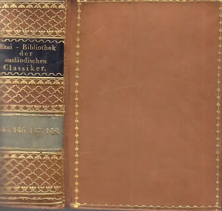 Bemerkungen: Zustand: Stempel und Name auf eingeklebtem Zettel auf Vorsatz // Mit 4 Frontispizen. Übersetzt von Heinrich Döring und Julie von Nordenflycht und von Wilhelm von Lüdemann u. a aus dem Italienischen, Taschenbibliothek der ausländischen Klassiker in neuen Verdeutschungen. Band 145: Lord Byron's Poesien. Neunzehntes Bändchen. Sardanapal. / Band 146: Lord Byron's Poesien. Zwanzigstes Bändchen. 1) Die Braut von Abydos. 2) der Gjaur. / Band 147: Vittorio Alfieri's Trauerspiele. Sechstes Bändchen. 1) Orest. 2) Maria Stuart. / Band 148: Vittorio Alfieri's Trauerspiele. Siebentes Bändchen. 1) Polynices. 2) Brutus, der Aeltere. / Der Vater des Komponisten Robert Schumann kreierte um 1814 die ersten Bucheditionen im Kleinformat die auch unter der Verlagsbezeichnung: Strasser, Heilbronn, Schwan und Götz, Mannheim, Liter. Commissions-Comtoir, Ronneburg, bzw. Gebrüder Schumann, Zwickau, erschienen. Daneben gab es die "Etui-Bibliothek der deutschen Classiker"