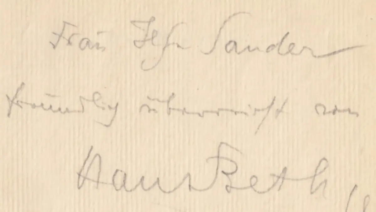 Bemerkungen: Zustand: Der empfindliche gelbe Einband leicht angestaubt, der vordere fliegende Vorsatz mit mehrzeiliger, datierter und signierter Widmung des Verfassers aus dem Jahre 1943, der Buchblock sauber und frisch // - die Silhouette auf dem Einband ist dem Silhouettenbuch der Adele Schopenhauer entnommen. Auf dem Titelblatt eine alte deutsche Vignette. Der Druck des Buches erfolgte bei Otto v. Holten, Berlin. Signiert vom Autor