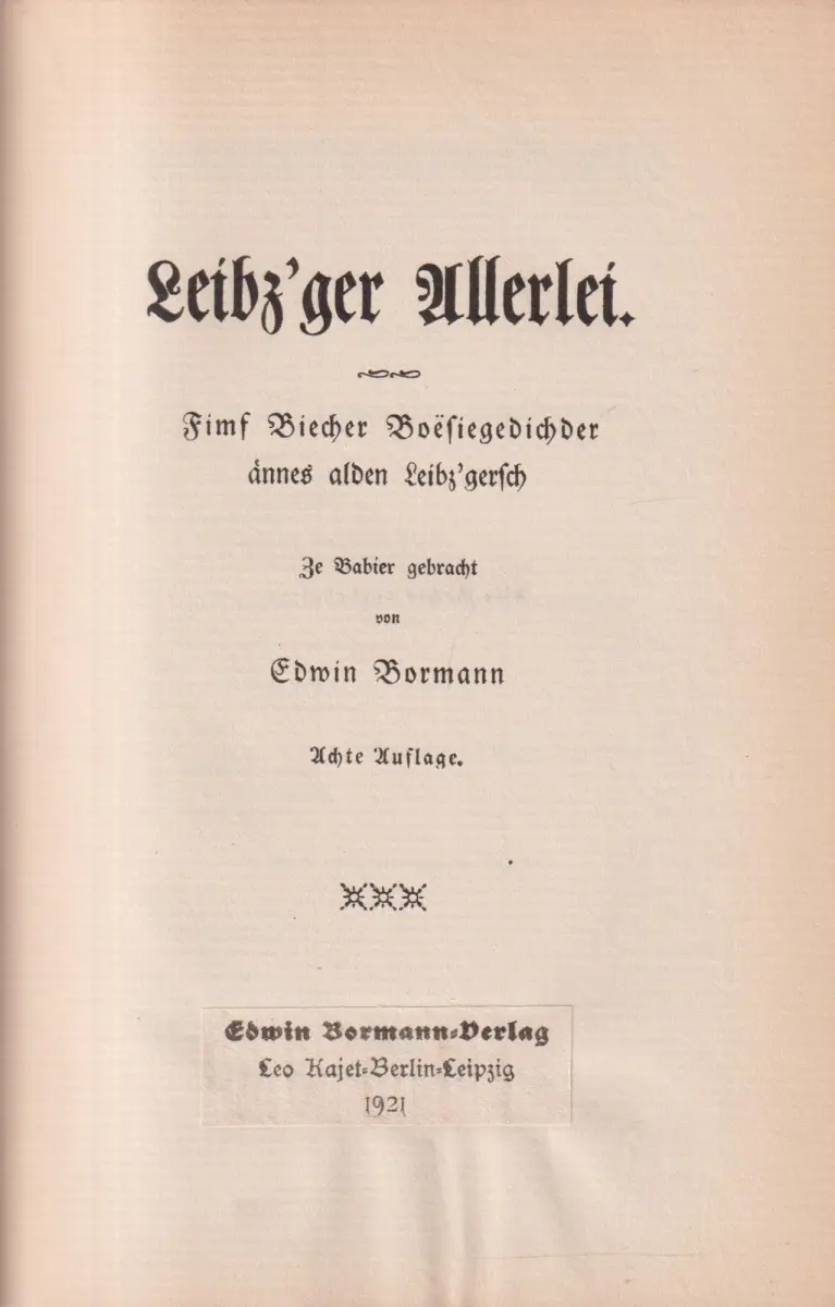 Schlagworte: Leipzig / Mundartdichtung / Sächsisch, Orts- & Landeskunde, Literatur und Unterhaltung, Lyrik und Gedichte, Mundart, Leipzig