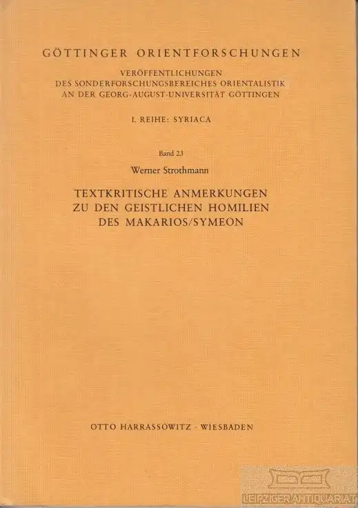 Bemerkungen: Zustand: Einband etwas berieben, Schnitt angeschmutzt, Papier mit leichter Randbräune // Göttinger Orientforschungen, I. Reihe: Syriaca 23. Große Teile in griechisch