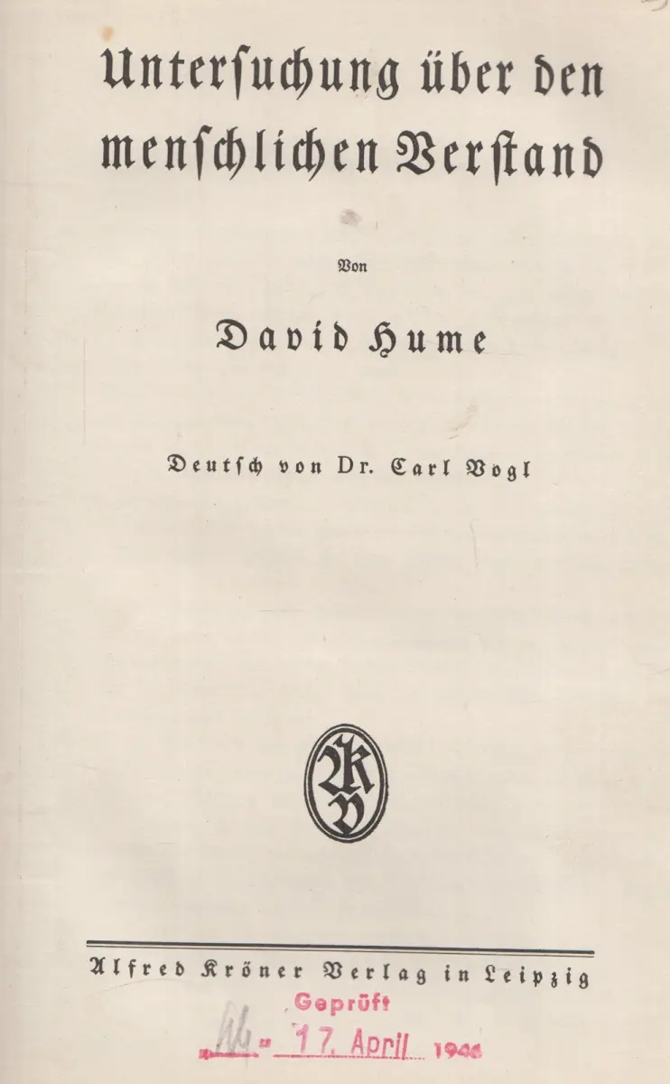 Leipzig: Verlag Alfred Kröner, 91 Seiten 22 x 15,5 cm, Hardcover in Halbleinwand, nachgebunden