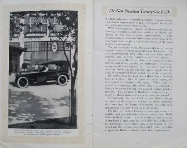 Buick Valve-in-Head Six Cylinder Modellprogramm 1921 Automobilprospekt (9535)