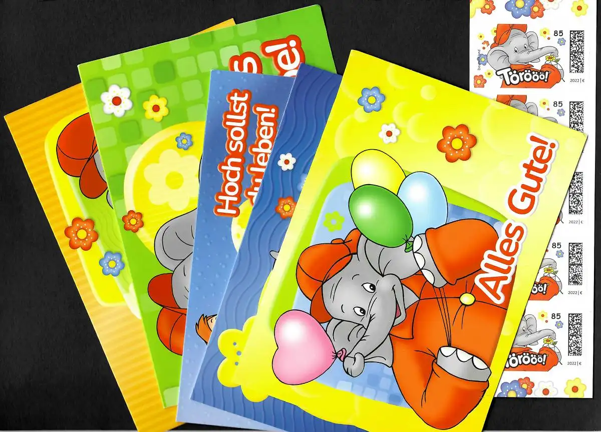 Bund 2022: Benjamin Blümchen, Törööö, 5x Postkarten mit Umschlag und Marken, **