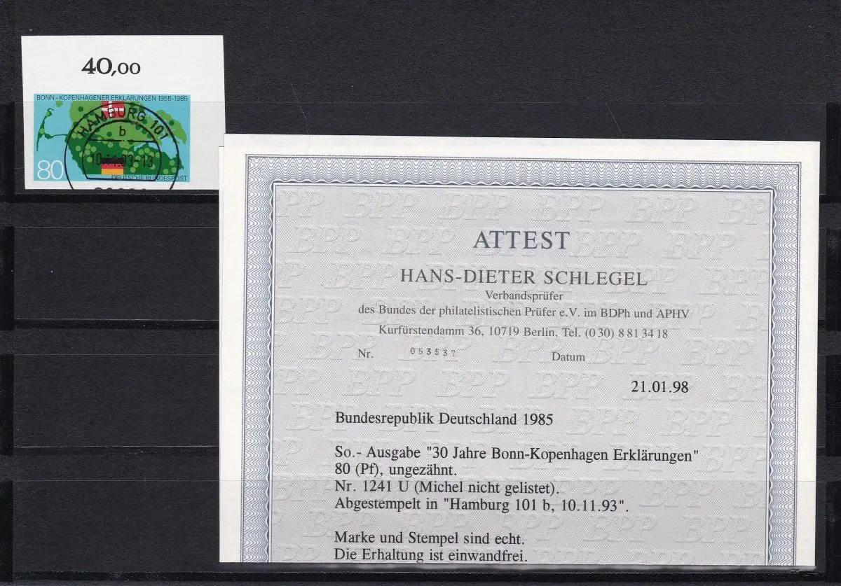 Bund: MiNr. 1241 U, gestempelt !!!, BPP Attest
