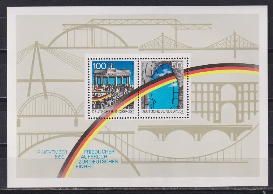 Bund Blockausgabe Deutsche Einheit MiNo. Bl. 22 PF IV ** : B von Bundespost bei 1481II oben links abgeschrägt (35.-)