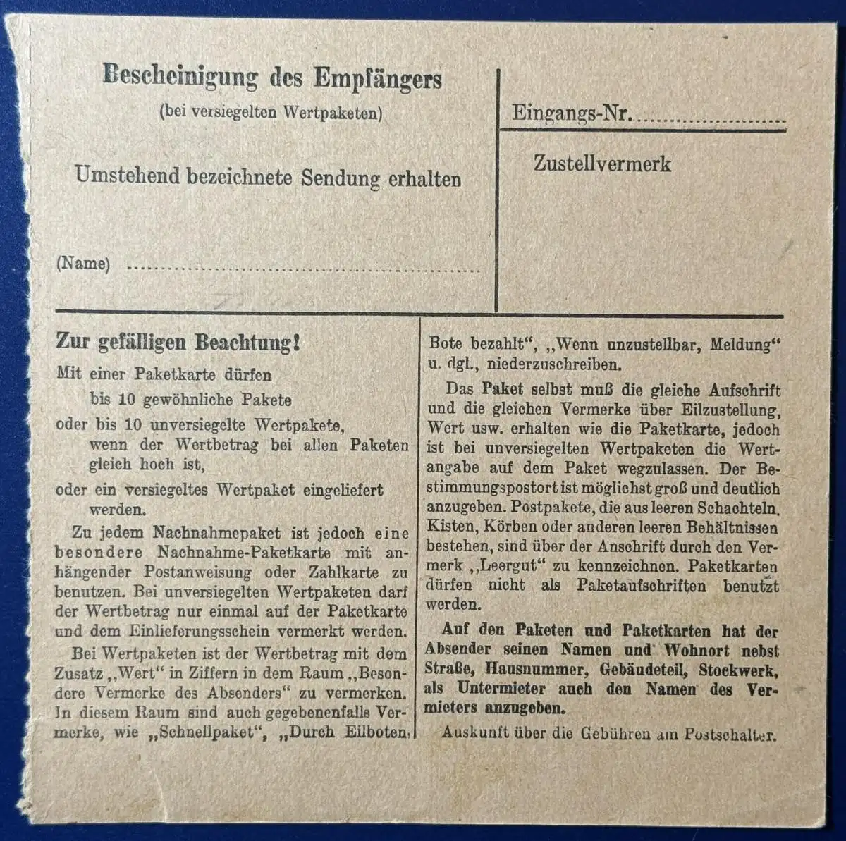 Einheit: Paketkarte