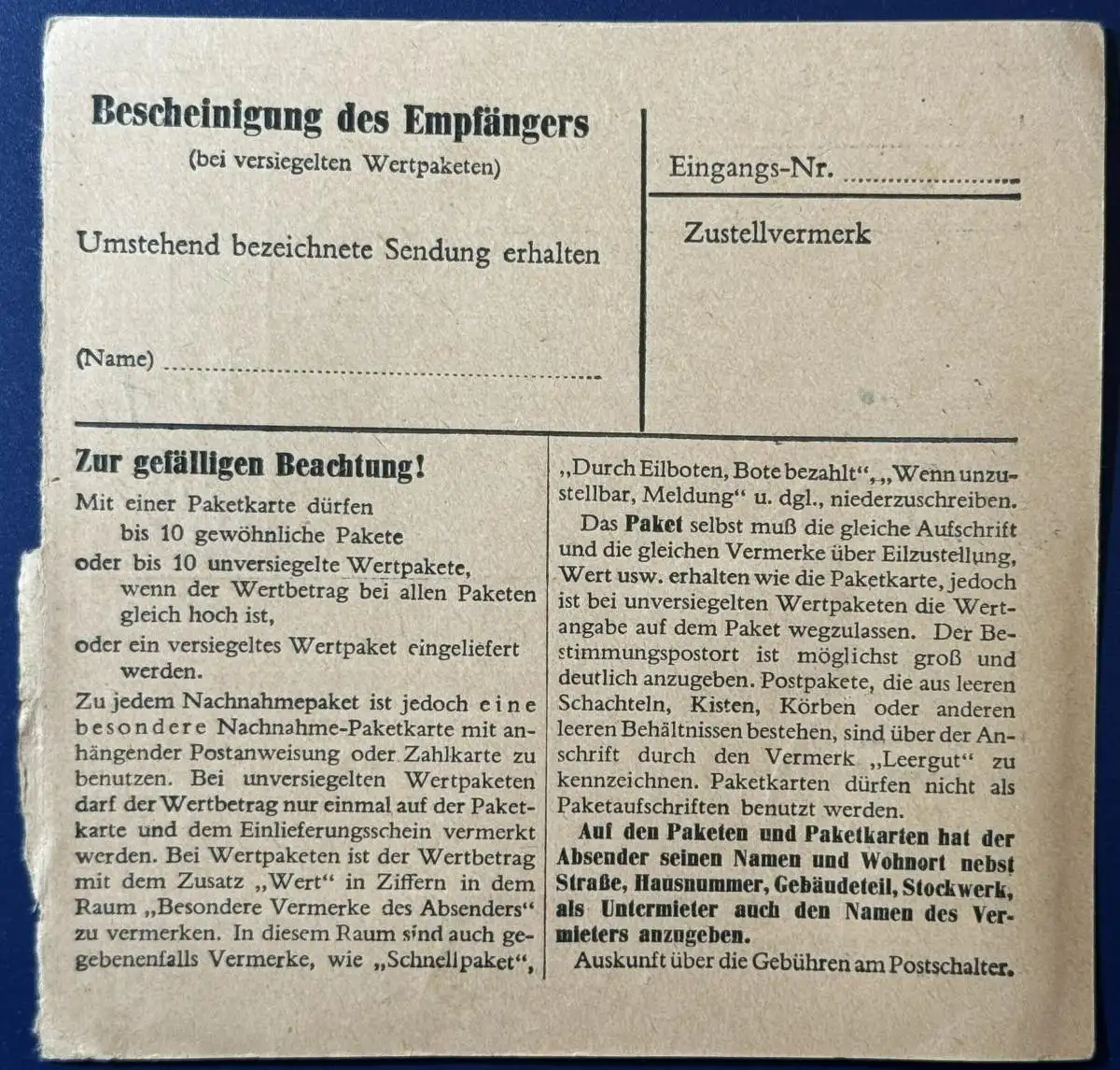 Einheit: Paketkarte