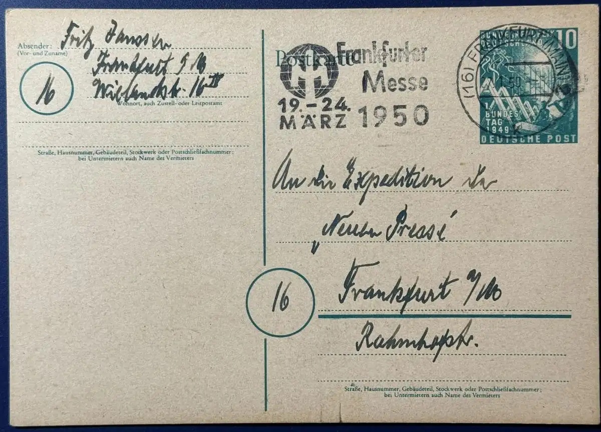 Bund, Sonderpostkarte, Ganzsache, 1950
