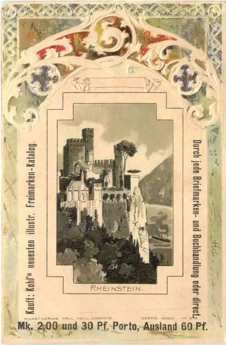 Burg Rheinstein - Litho Prägekarte -781962