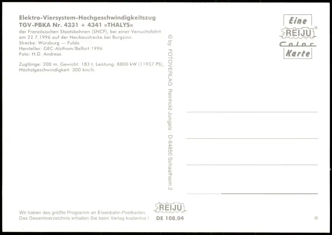 Burgsinn 281 Elektro-Hochgeschwindigkeitszug TGV-PBKA Nr. 4331 THALYS 1996