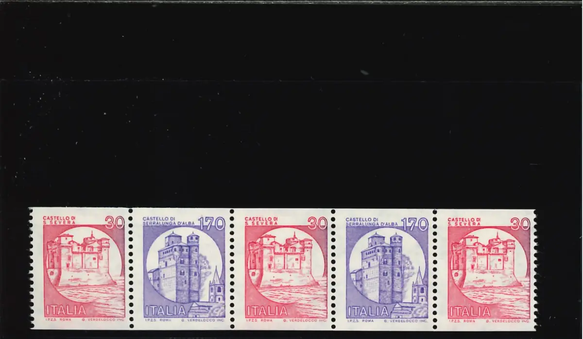 MNH - Vollgummi - CASTELLI MACHINETTE 30 + 170 L. STREIFEN OHNE NUMMER Cod. ITAV_0589