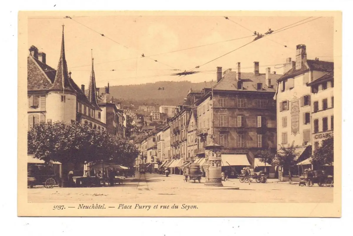 CH 2000 NEUCHATEL / NEUERBURG NE, Place Purry et Rue du Seyon, Marktstände, Litfaßsäule