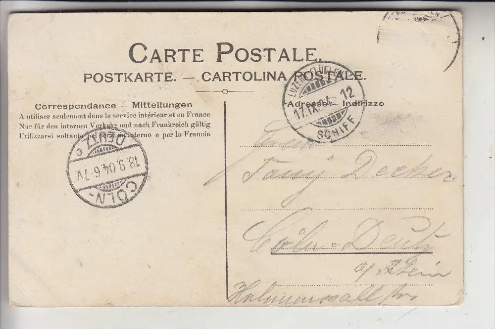 CH 6353 WEGGIS, Ortsansicht 1904, kl. Oberflächenmängel, Schiffspost "LUZERN-FLÜELEN SCHIFF"