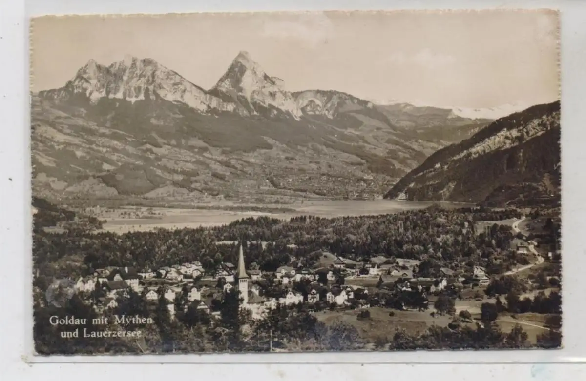 CH 6410 ARTH - GOLDAU SZ, Ortsansicht mit Mythen und Lauerzersee, 1945