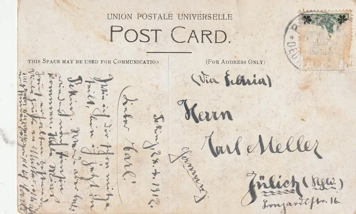 CHINA - PEKING, Ketteler Monument, 1912, AK nach Jülich