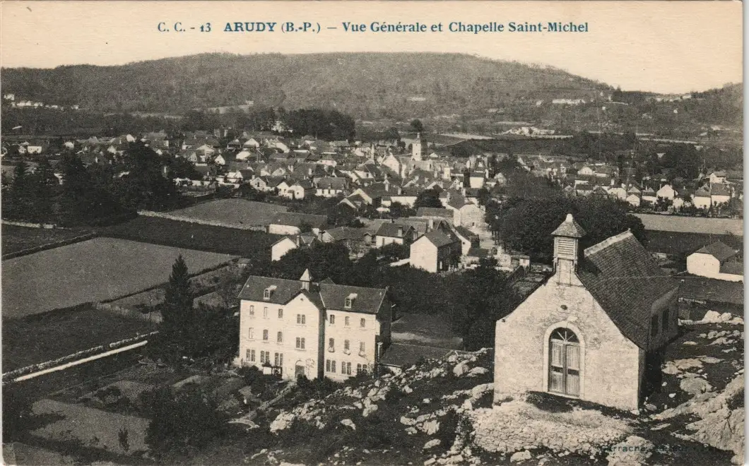 CPA Arudy Vue Générale et Chapelle Saint-Michel 1917