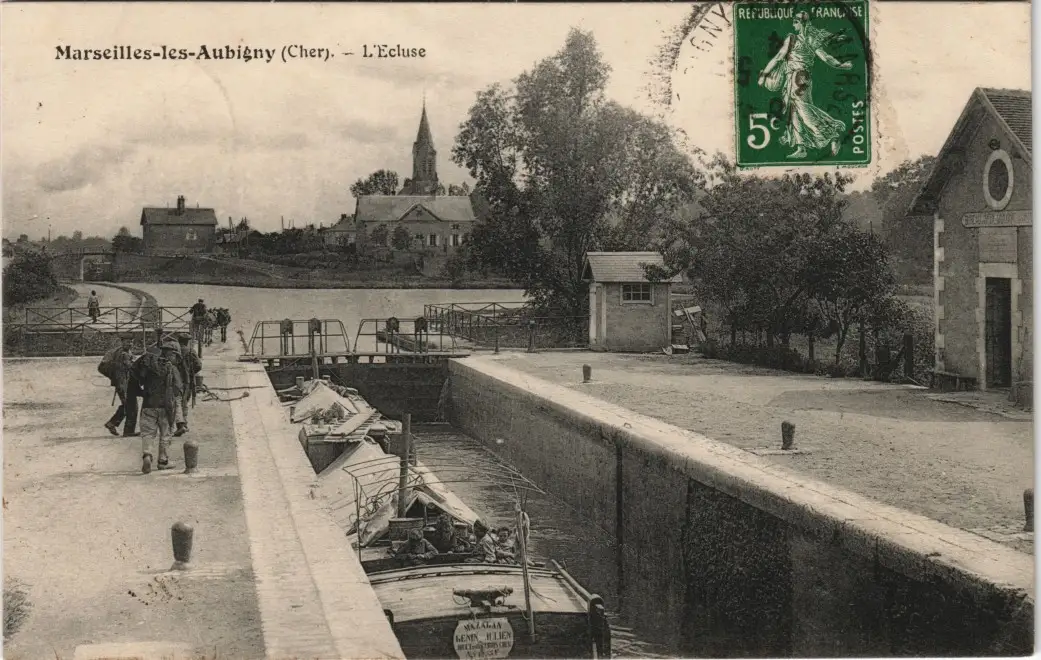 CPA Aubigny-les-Pothées L'Ecluse/Schleuse - Boot 1914
