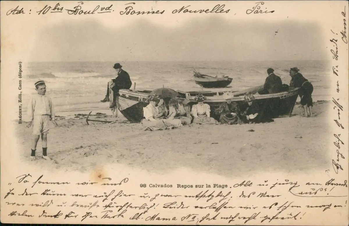 CPA .Frankreich Calvados, France Familie, Fischerboot am Strand 1903