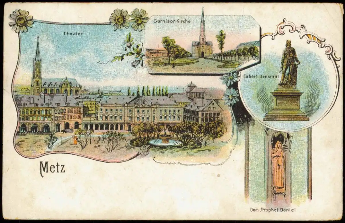 CPA Litho AK Metz Theater, Garnisionskirche Denkmal 1916