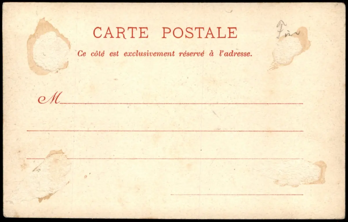 auf der Rückseite Kleberückstände und abgerissenes Papier