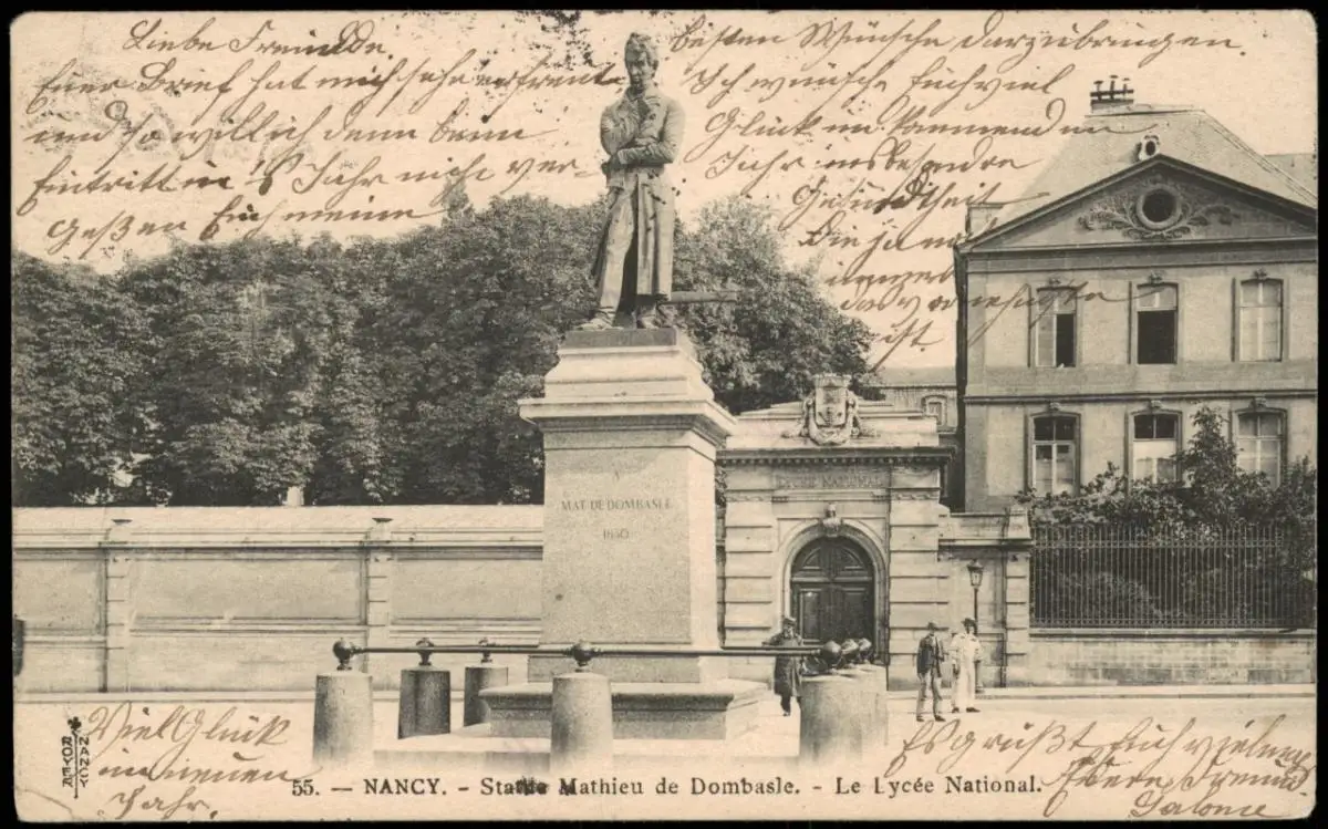 CPA Nancy Denkmal, Statue Mathieu de Dombasle, Lycée National 1903